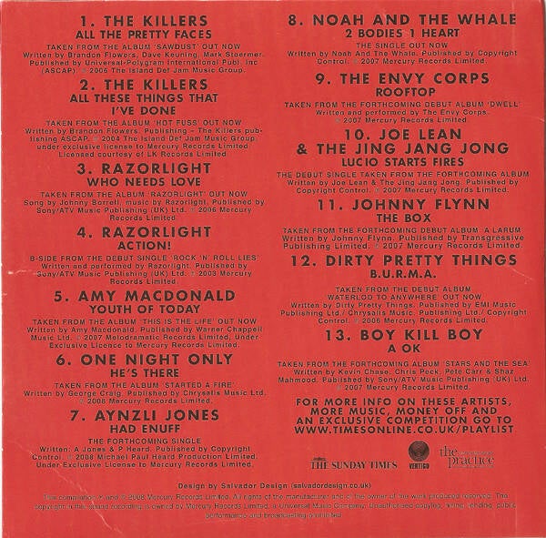 CD- The Sunday Times playlist - the ultimate indie collection - Engeland 2008 - Cat. Nr. 1402384701